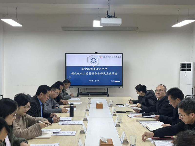 2025年1月10日上午,学院党委召开了2024年度副处级以上党员领导干部民主生活会。学校第六督导组组长、党委常委、副校长赵鑫、党委统战部常务副部长李景禄、党委统战部副部长朱晓娟、党委统战部七级职员赵国剑出席并指导学院党委班子民主生活会。学院领导班子成员、党委委员、五级职员、党支部书记、系所(中心)负责人、教师代表参加会议。会议由学院党委书记李发军主持。