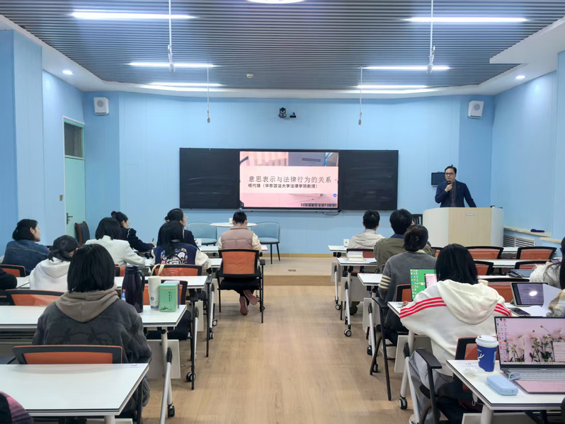 2025年4月17日上午,华东政法大学法律学院杨代雄教授应邀来我院做题为《意思表示与法律行为的关系》学术讲座。我院副院长罗杰主持,张钰涵副教授、解彩霞博士参会与谈,相关学科研究生40多人聆听讲座。