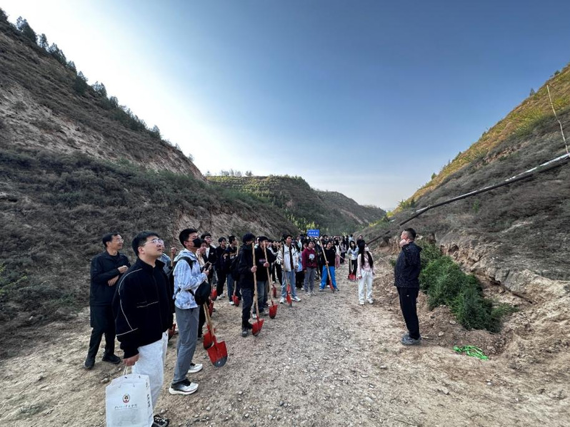 师生们在聆听完专业人员讲解苗木栽植的标准化流程及生态保护知识后,以“法律人的严谨”投入劳动实践,严格遵循“定点划线、挖坑培土、扶苗固根、围堰浇灌”四步工作法,分工协作、配合默契。经过三个小时劳动,成功栽植侧柏60余棵,新绿装点的法治林为春日山野增添盎然生机。