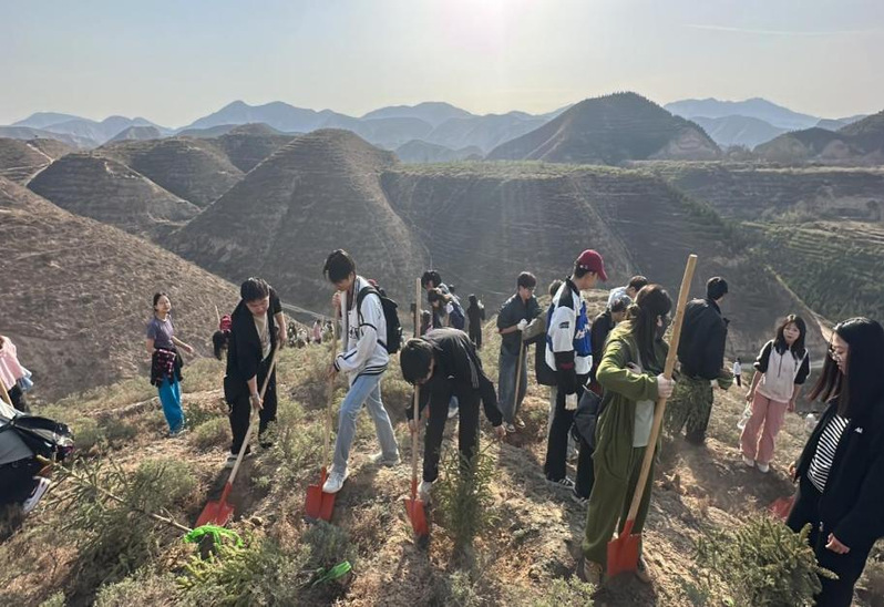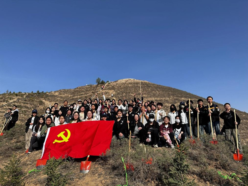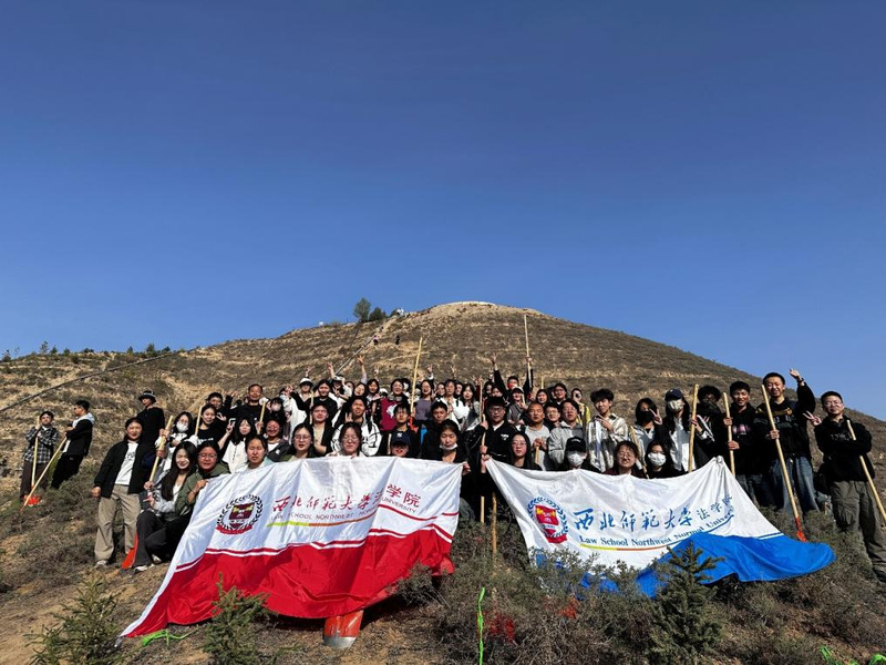 4月24日清晨,学院党委积极组织师生党员、入党积极分子代表和学院青年志愿者共计80余人,赴西北师范大学知行校区北山绿化基地开展“党旗飘扬守初心植树护绿践法治”义务植树主题党日活动。