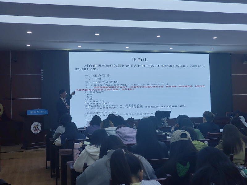4月25日,中国政法大学比较法学研究院副院长、中德学院院长谢立斌教授应邀为我院师生带来了一场题为《宪法案例分析原理与方法》的学术讲座。讲座在学院模拟法庭举行,吸引了多名师生到场聆听,气氛热烈。