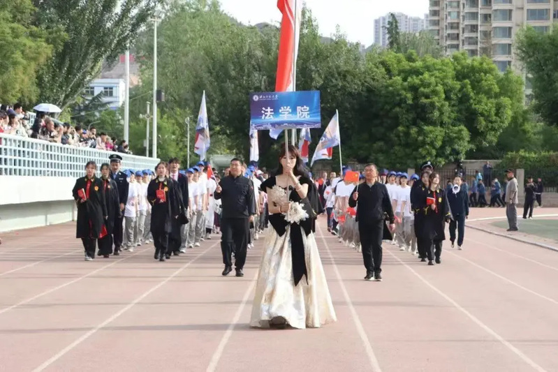 5 月 14 日上午,运动会开幕式隆重举行。学院方阵昂首阔步走进会场,整齐的 步伐、响亮的口号,彰显着法科师生的朝气与活力。“法耀青春,逐梦赛场”的口号声 震云霄,他们用饱满的热情诠释着对法律事业的热爱和对体育精神的追求。方阵中,师生们有的身着运动装,有的身着法官服,有的手持法律典籍,他们精神抖擞,展现出法 学院团结一心、奋勇争先的精神风貌。