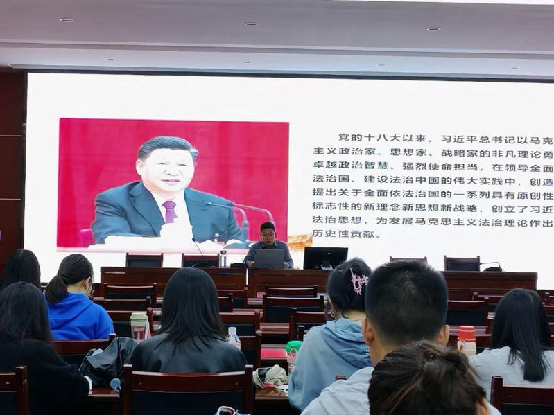 2025年5月10日上午,学院研究生第三党支部在模拟法庭开展专题党课学习。院长何俊毅教授以《习近平法治思想的原创性贡献》为题,为全体党员和入党积极分子带来了一场思想深刻、内容详实的专题讲座。