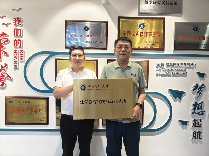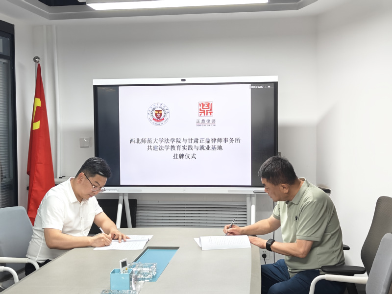 为深入贯彻国家卓越法治人才培养战略,创新实践教学模式,拓宽学生实习就业渠道,提升人才培养质量,服务社会法治建设,2025年7月4日,西北师范大学学院与甘肃正鼎律师事务所举行《共建法学教育实践与就业基地协议书》签约暨“法学教育实践与就业基地”揭牌仪式,此举标志着学院在深化协同育人方面迈出重要一步,为培养高素质应用型法治人才搭建了坚实平台。