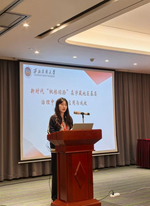 叶美蓉同学在铸牢中华民族共同体意识的法治建设单元做了题为《新时代枫桥经验在涉藏地区基层治理中的创新应用与成效》的汇报,着重探究了在推进基层治理现代化的时代背景下,涉藏地区如何依托枫桥经验,结合地域、民族等进行本土化创新,以破解治理难题、提升治理效能,进而筑牢中华民族共同体意识。