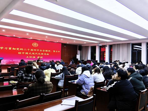 11月20日,马克思主义学院王怀强教授受邀为学院师生党员作《学习贯彻党的二十届四中全会精神奋力开创中国式现代化建设新局面》主题宣讲。报告从五年规划与中国式现代化的历史演进、“十五五”时期的战略任务等五个维度,系统解读全会精神,并结合法学学科实际,阐释了 “推进社会主义民主法治建设”在“十五五”规划中的制度保障作用。