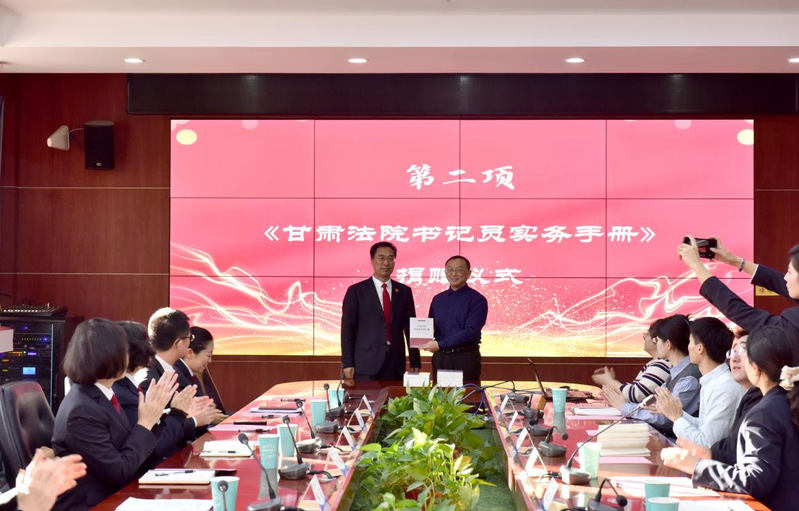 随后,省法院政治部主任林涛同志向必赢线路检测3003no1捐赠10册《甘肃法院书记员实务手册》。胡勇同志接受捐赠,并对省法院政治部表示衷心感谢,表示将妥善管理和运用好这批专业图书,让书籍成为学生党员提升专业能力、对接司法实践的重要助力。
