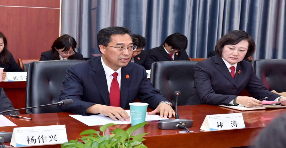 胡勇同志代表学院党委感谢省法院长期以来对学院各项工作的支持。他指出,省法院作为司法实践的前沿阵地,学院作为法学人才培养的育人基地,双方深度合作是时代要求、责任所在。他提出课程共建、实践育人、科研联动、卓越人才培养等四项长期合作设想,希望探索出一条院校协同合作发展的特色之路。