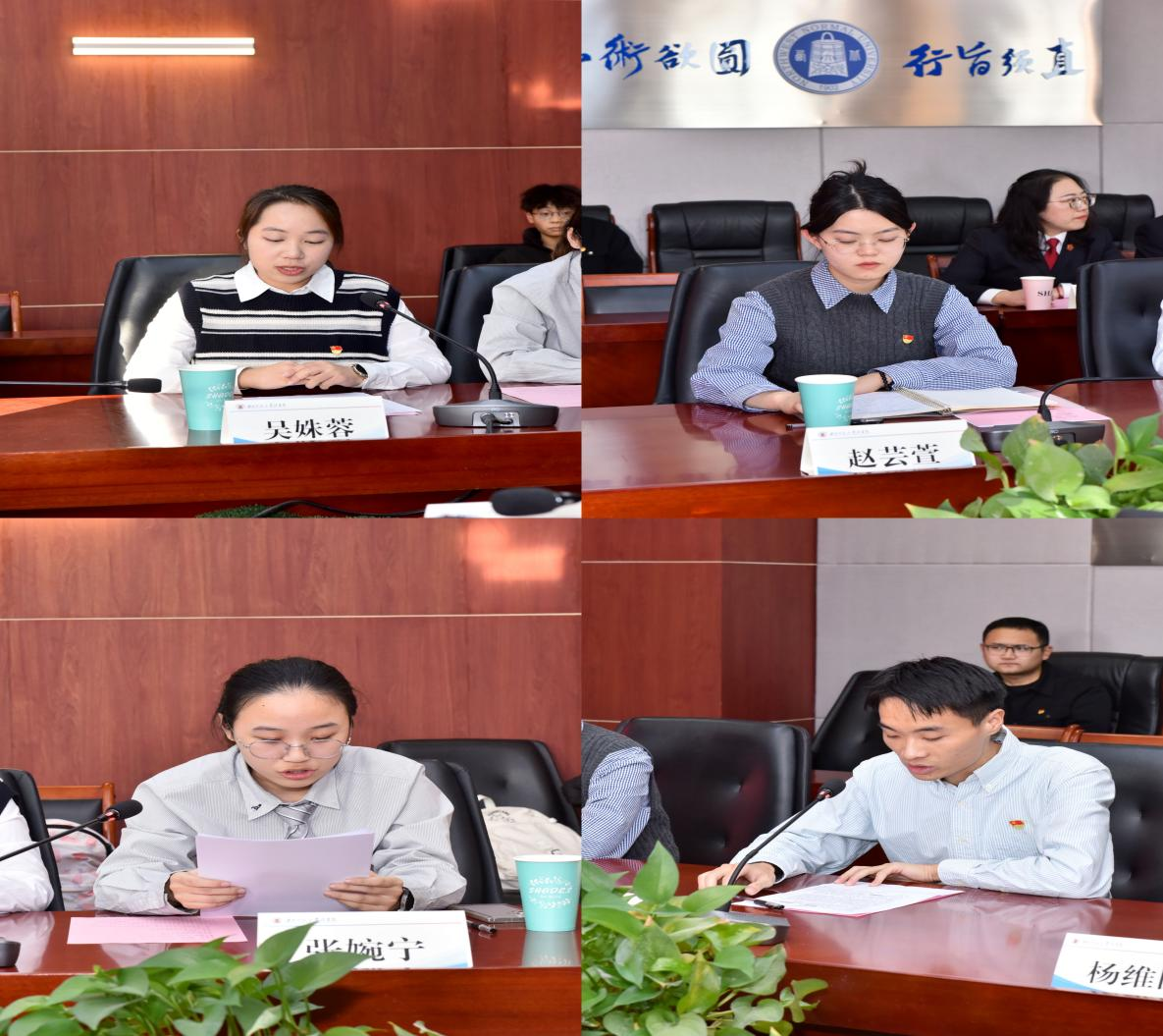 在座谈交流环节,学院研究生第一党支部4名党员代表结合“法官进校园”活动分享了各自感悟。张婉宁同志谈及“庭审现场”互动课堂的沉浸式体验,让她切实感受到法律条文在实践中的鲜活运用;吴姝蓉同志表示,活动中“每日研读法条”“剖析典型判决”的建议,有效破解了自身理论对接实务的困惑;赵芸萱同志坦言,“钻进去、走出来”的办案思维,让自己正视“重法条轻事实”短板;李甫同志则从环境资源司法讲座中深刻认识到法律实践中部门法交叉的复杂性。四位学生党员均表态,将扎实锤炼专业本领,立志成长为兼具家国情怀与专业素养的优秀法律人才。