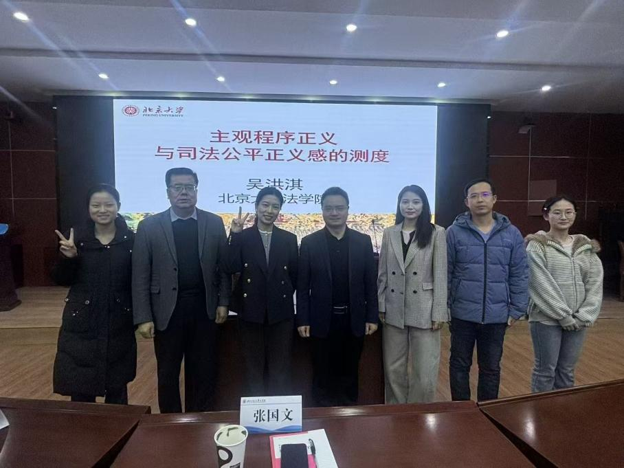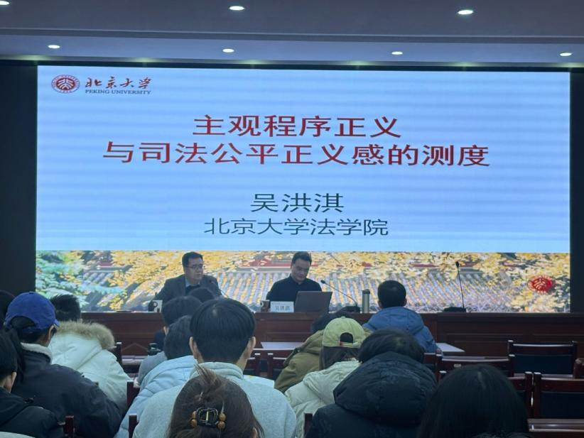 2025 年 11 月 28 日,必赢线路检测3003no1特邀北京大学学院吴洪淇教授作题为《主观程序正义与司法公平正义感的测度》的学术报告,齐建辉副教授主持报告会,涂钒副教授、陈宏洁博士、张国文博士参加与谈,学院研究生和本科生140多人聆听报告。