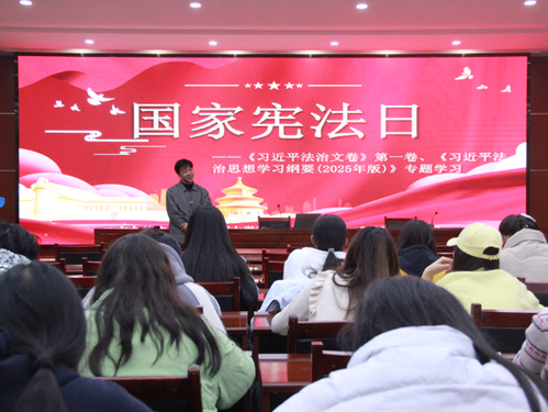 学院在开展社会普法宣传的同时,注重加强大学生理论学习思想引领,组织2025级全体本科生专题学习《习近平法治文卷》第一卷及《习近平法治思想学习纲要(2025年版)》,通过导学、研讨、撰写心得等方式,引导学生深刻领会习近平法治思想的内涵与意义。各班级也积极举办“国家宪法日”主题班会,通过观看宣传片、学习条文、案例研讨等形式,增强学生维护宪法权威、运用法治思维解决问题的能力。