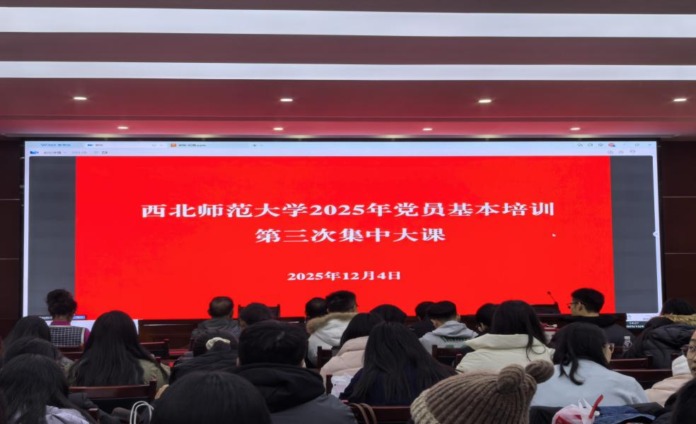 为持续加强党员队伍建设,提升党员的政治素养和理论水平,2025年12月4日下午2:30,西北师范大学学院2025年党员基本培训第三次集中大课在模拟法庭顺利举行。