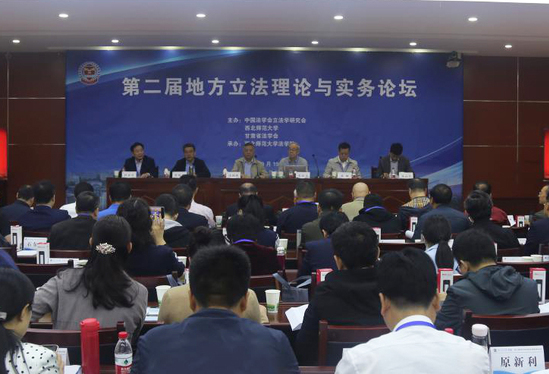 919日,由中国法学会立法学研究会、甘肃省法学会、西北师范大学联合主办,西北师大学院承办的第二届地方立法理论与实务论坛在西北师大举办。全国人大常委会法工委发言人办公室主任胡健,中国法学会立法学研究会常务副会长朱景文,副会长沈国明、冯玉军、刘松山、熊文钊,西北师大副校长韩高年,甘肃省法学会专职副会长薛峰,甘肃省人大常委会法制工作委员会副主任殷悦贤等出席论坛。来自全国45所高校科研院所、28家法治实务部门的专家、学者及各大高校博士、硕士研究生共160余人参加论坛。