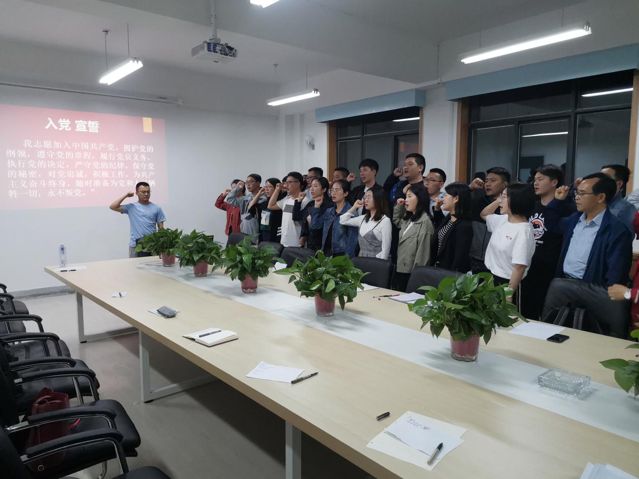 最后,在支部组织委员王寿琮同志带领下,全体同志面向党旗,新党员入党宣誓,老党员重温了入党誓词。